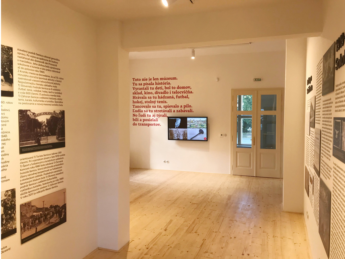 Návrh a realizace několika expozic v historické budově, která byla letohrádkem, sokolovnou, skladem, kulturákem i tělocvičnou. V archeologické expozici prezentujeme 18 artefaktů, které byly objeveny na území města Senica a jeho okolí. Základem interaktivní instalace je projekční stěna s třemi projektory na ultra krátkou projekční vzdálenost a sokl s vitrínou o délce 10m. Objekty ve vitríně jsou adjustovány na břidlicových kamenech, které tvoří základní osu instalace. Artefakty jsou rozdělěny do několika setů, které ilustrují vybraná období např. Paleolit, Mezolit, Neolit, Eneolit atd. Jednotlivé sety artefaktů ve vitríně jsou v časových intervalech postupně osvětlovány a doplněny o projekci několikanásobně zvětšených rotujících 3D kopií, které byly zpracovány formou fotogrammetrie. Díky pohybovým senzorům navíc může návštěvník archeologické expozice ovládat pohybem ruky projekci těchto 3D artefaktů. Součástí expozice je také instalace tří hrobů / Rodina, Milenci a hrob bojovníka “Conana” osvětlený formou videomappingu. Podrobné informace o těchto nálezech nejsou řešeny klasickými popiskami, ale textovými velkoformátovými lightboxy, které doplňují světelnou atmosféru celé expozice.